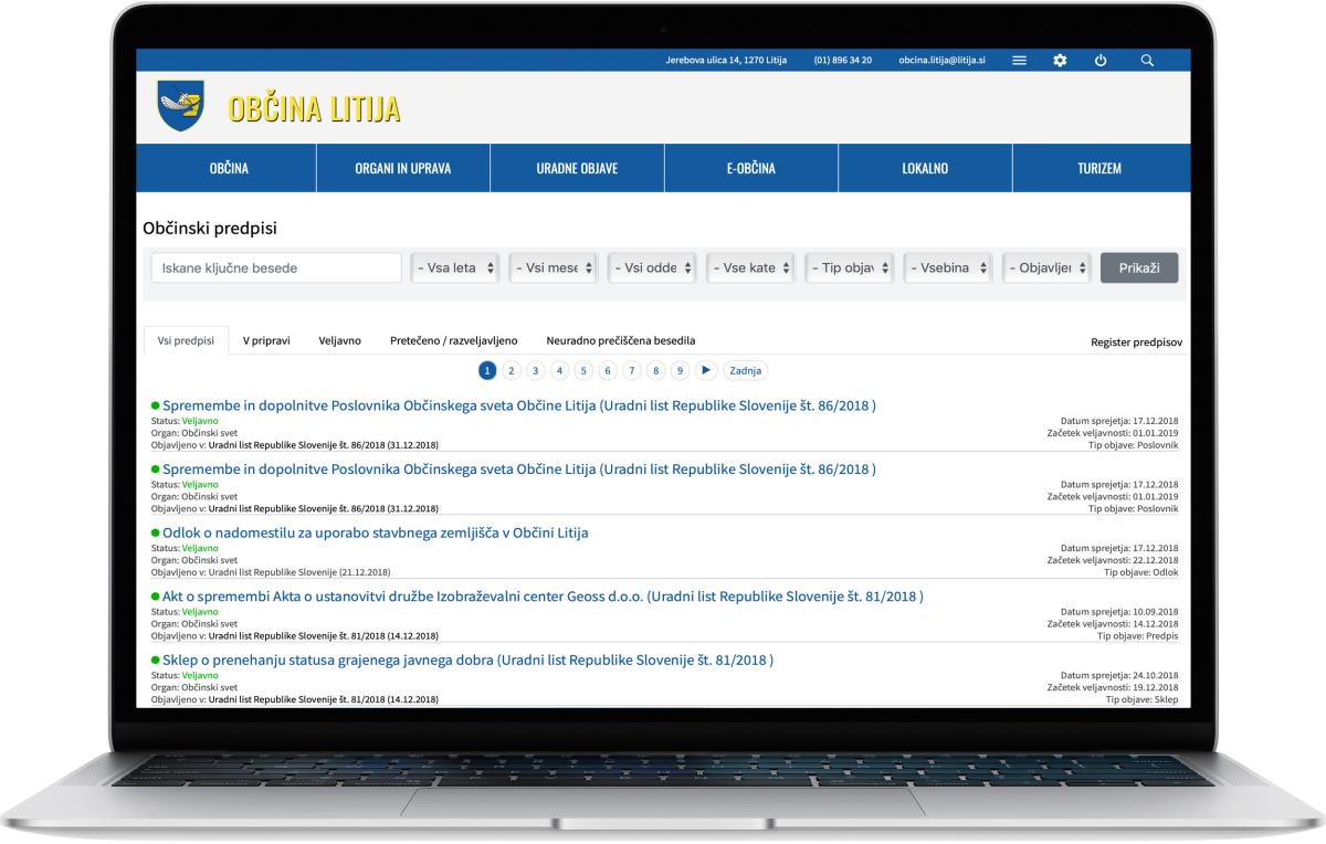 - pregled predpisov občine in uradne izdaje le teh,