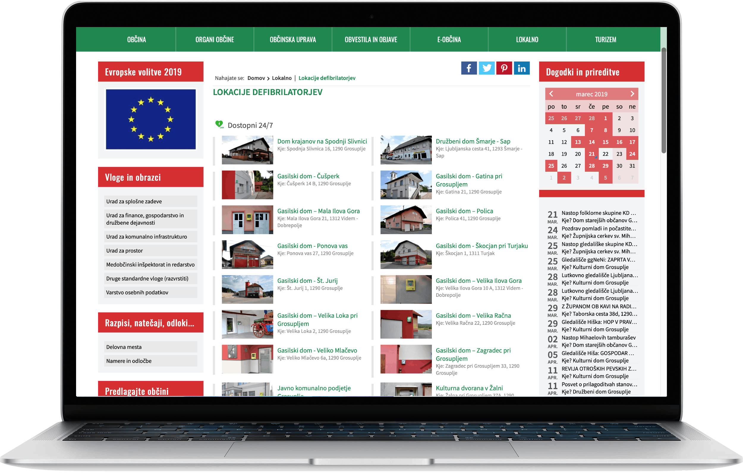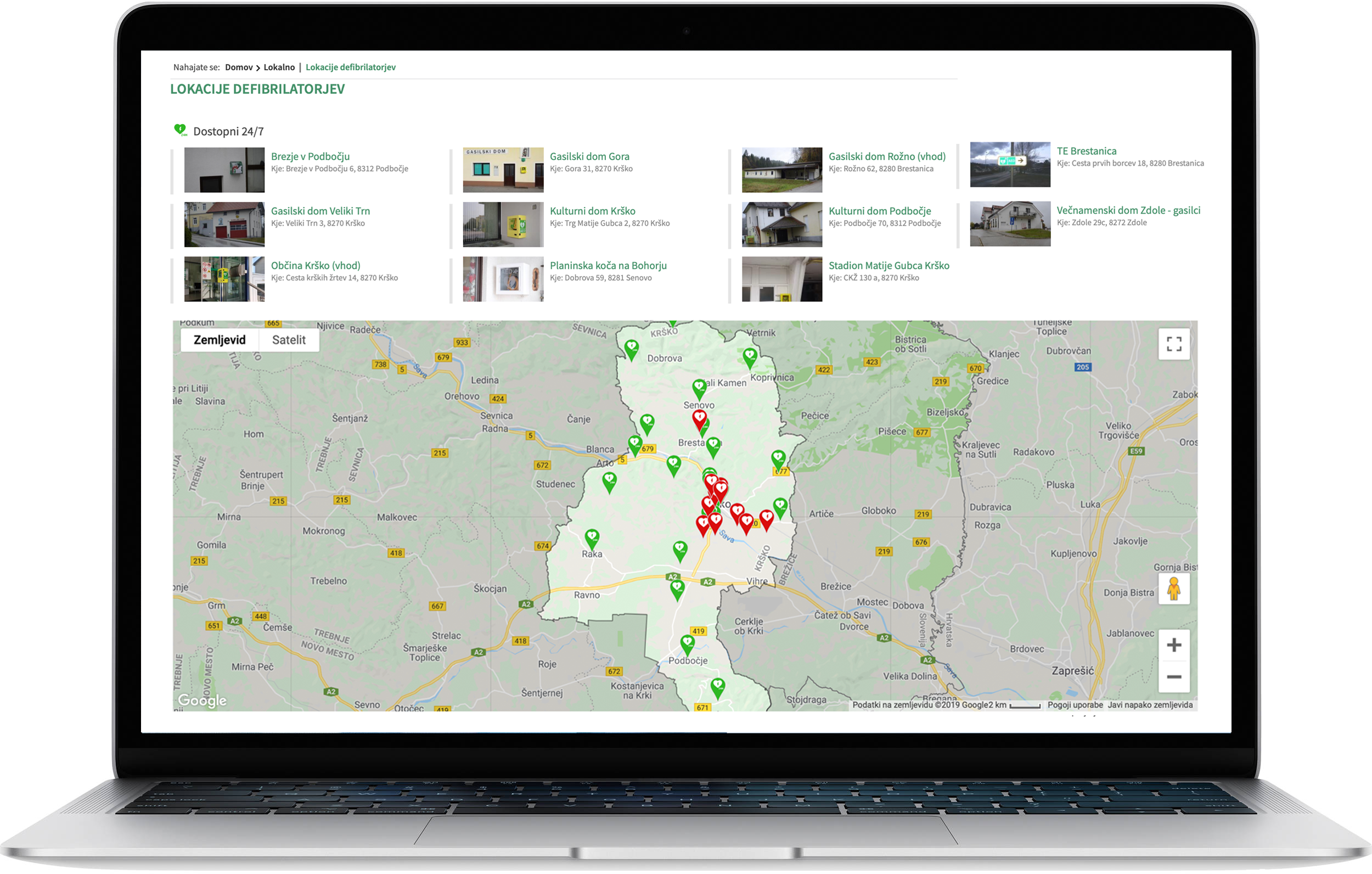 PRIKAZ SEZNAMA VSEH DEFIBRILATORJEV V OBČINI |