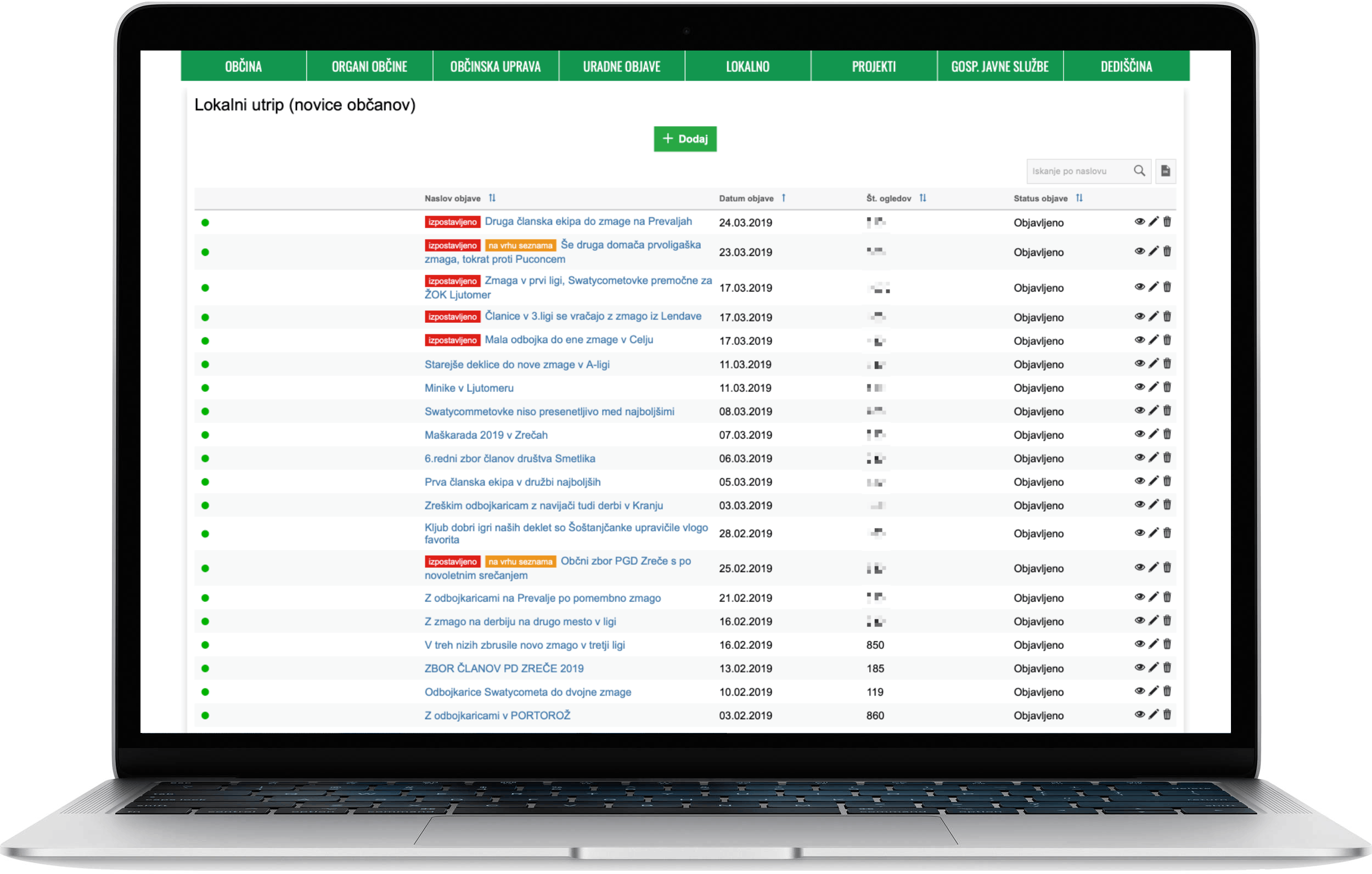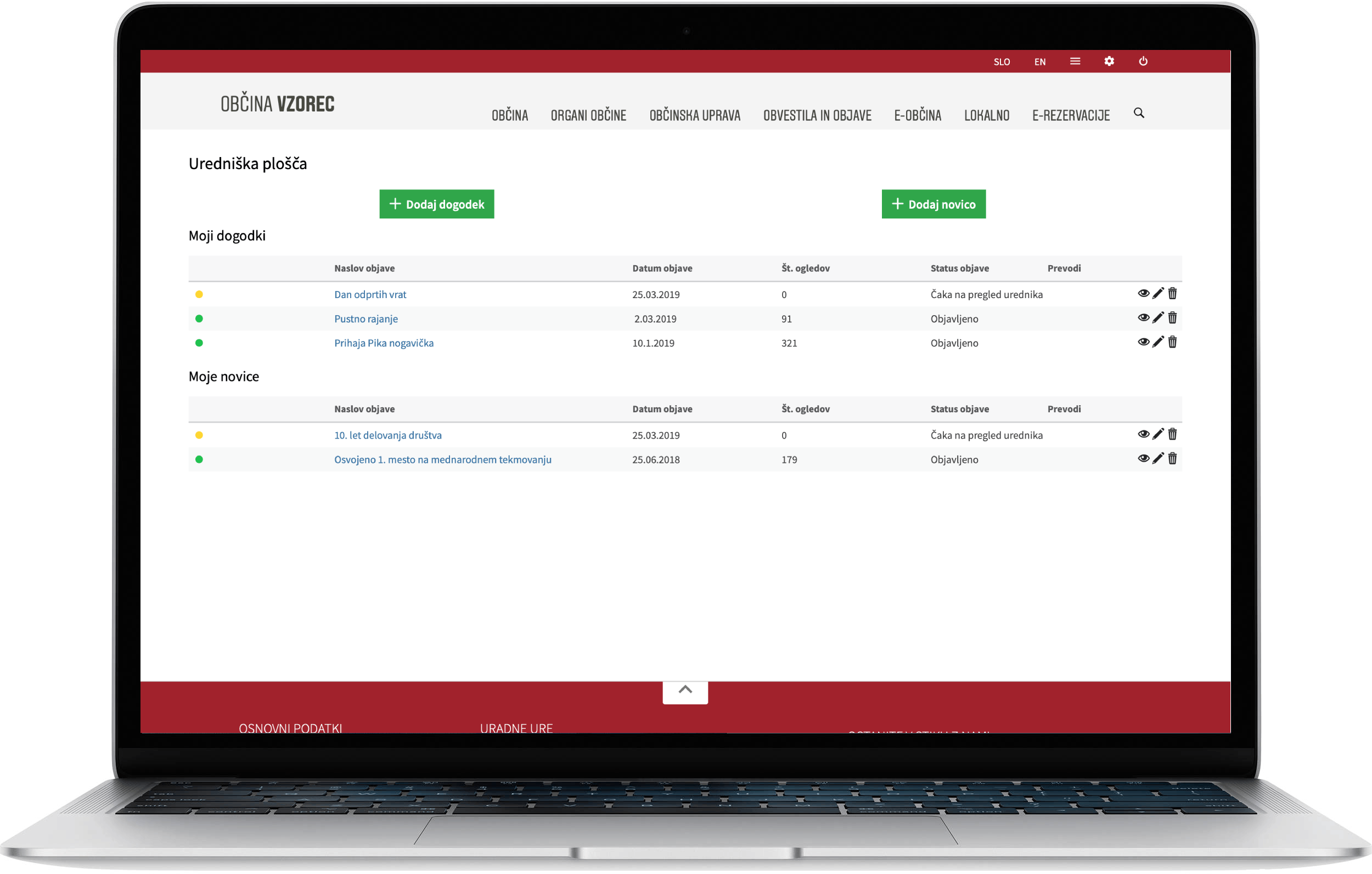 | PRIKAZ SEZNAMA NOVIC ALI DOGODKOV ZA UREDNIKA OBČINE, KI POTRJUJE OBJAVE |
