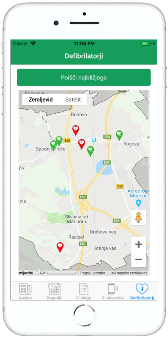 | VODENJE DO LOKACIJE NAJBLIŽJEGA DEFIBRILATORJA. |