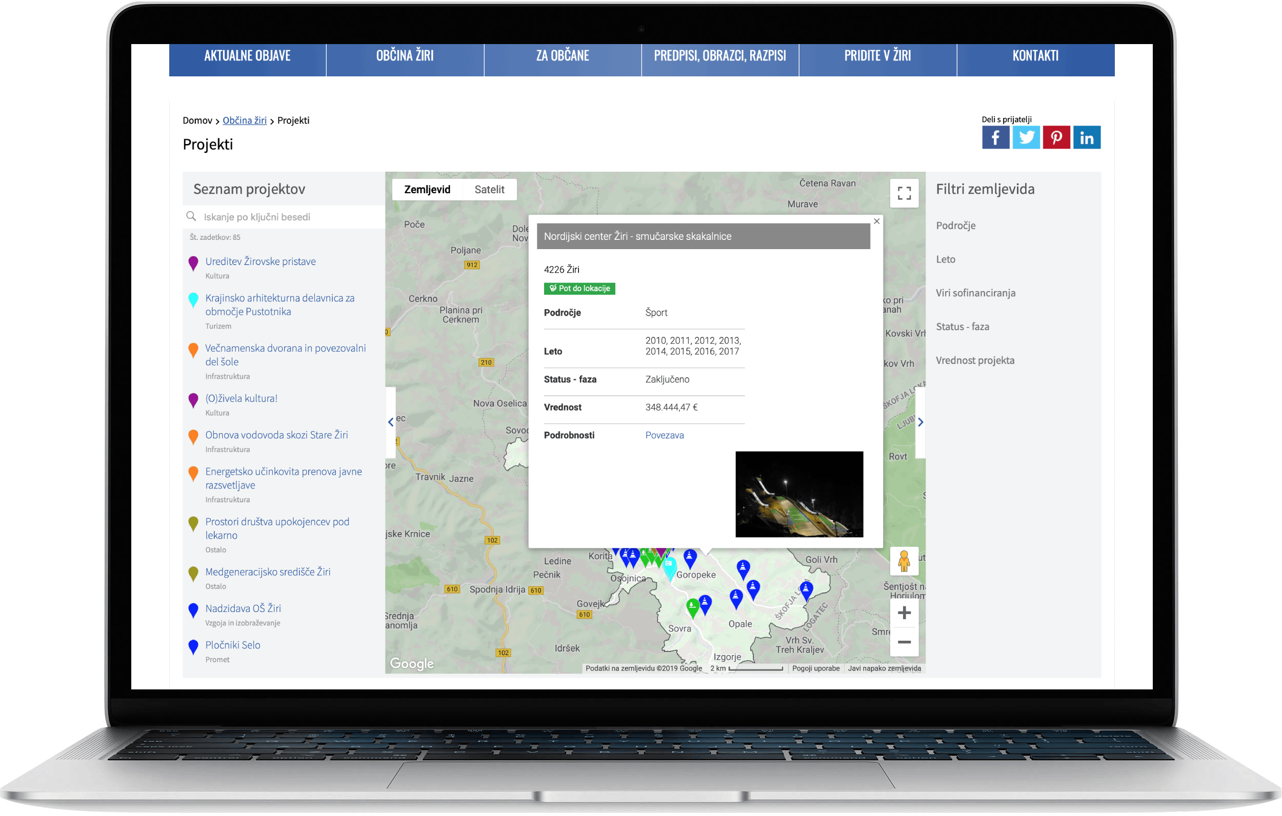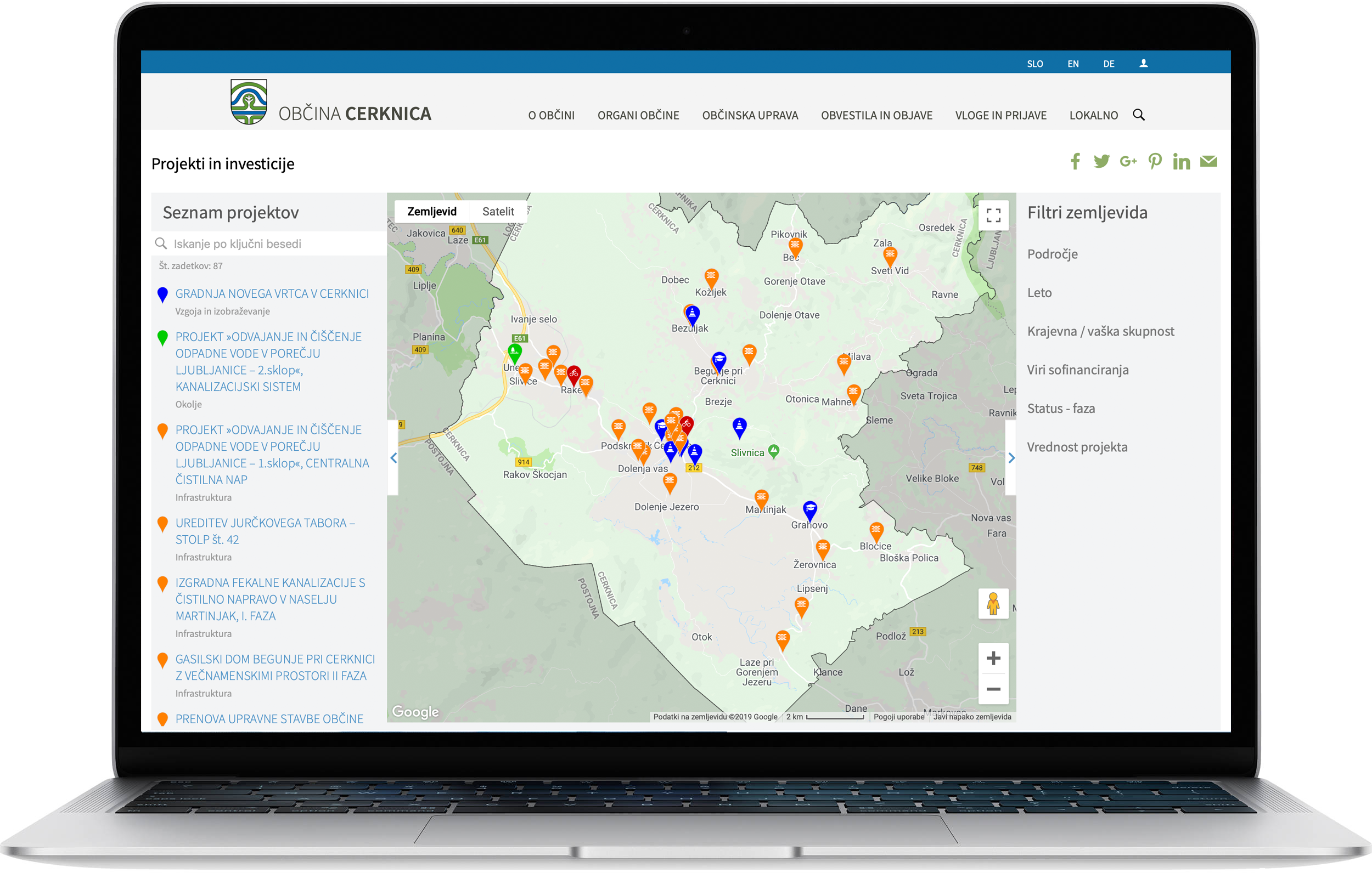 PRIKAZ VSEH PROJEKTOV OBČINE NA GOOGLE ZEMLJEVIDU |