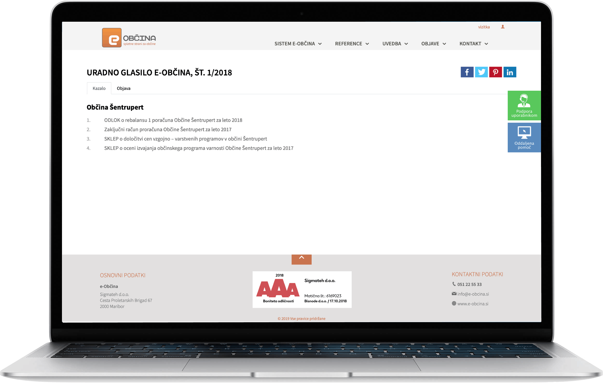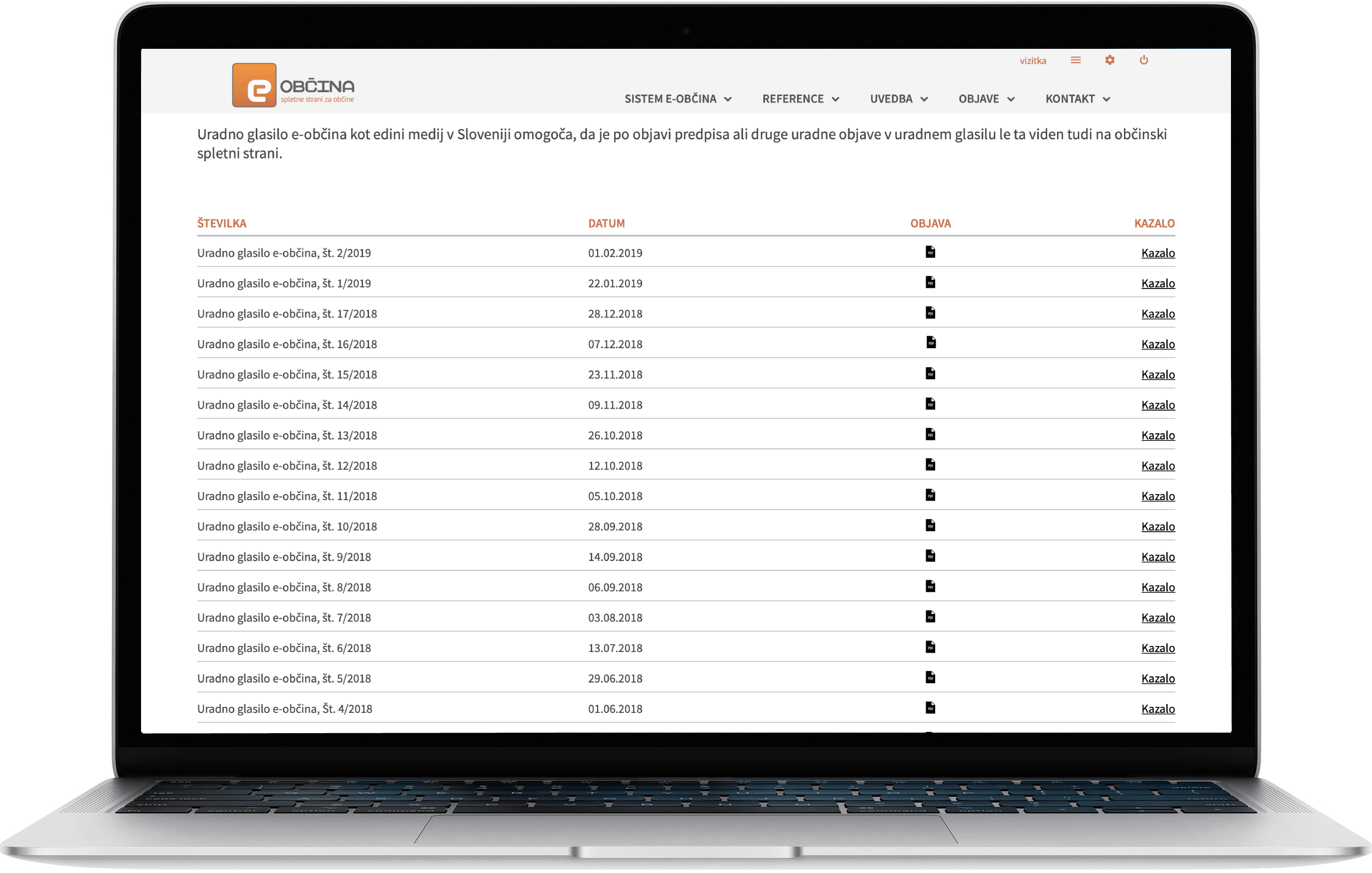 Uradno glasilo e-občina kot edini medij v Sloveniji omogoča, da je po objavi predpisa ali druge uradne objave v uradnem glasilu le ta viden tudi na občinski spletni strani.
