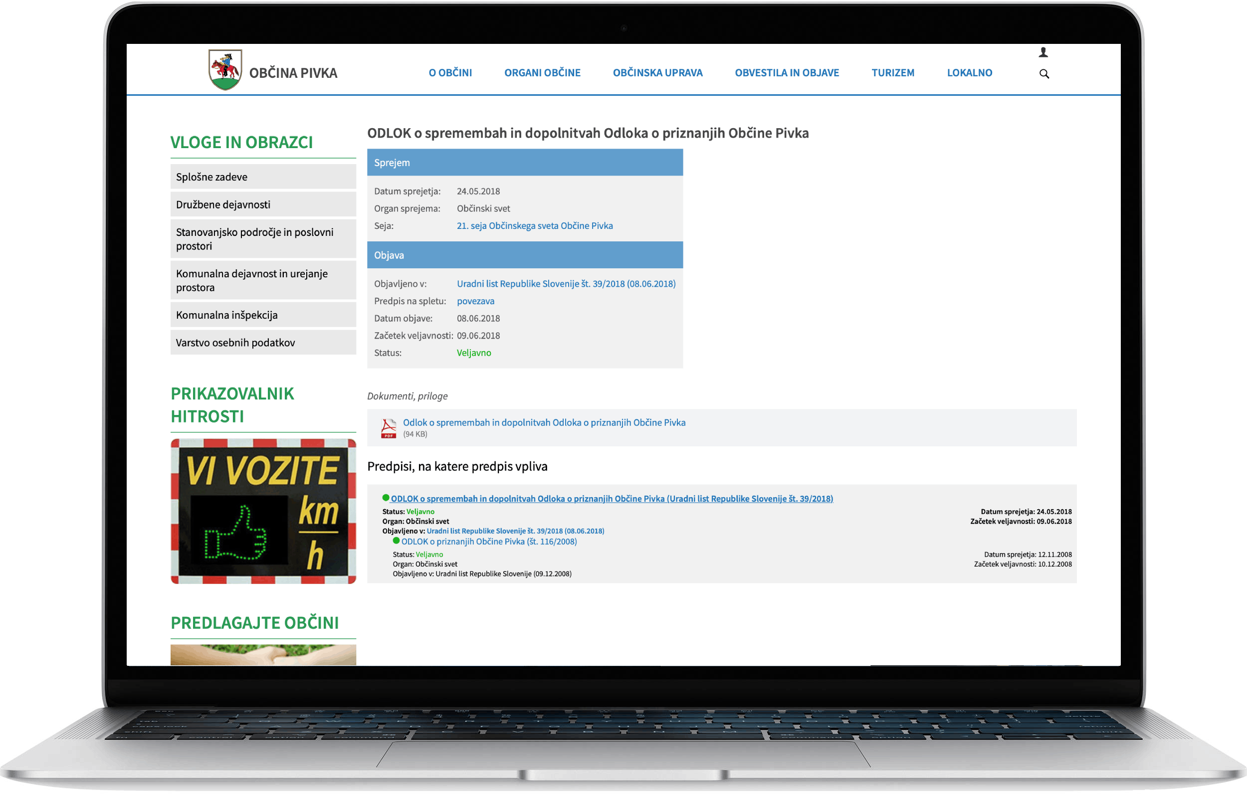 PRIKAZ PREDPISA NA SPLETNI STRANI OBČINE, TAKOJ OB OBJAVI V URADNEM GLASILU E-OBČINA |